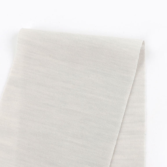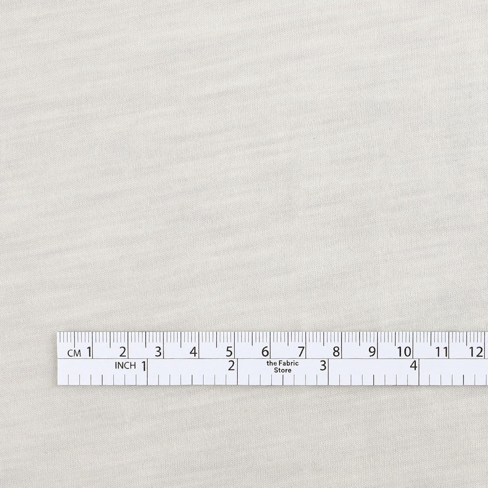 A midweight pure Merino in a stunning Quartz Grey Marle colourway. This single jersey fabric is super-soft and lightly textured, with a natural mechanical two-way stretch that adds comfort and flexibility. The fabric’s semi-transparent effect when stretched and naturally occurring slubs throughout lend a unique, textured appearance.